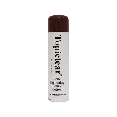 Topiclear Skin Lightening Beauty Lotion helps eliminate spots and blemishes. Clears dark spot areas of the skin. Often used on knee caps, elbows, under arms, and feet. Creates an even, lighter, lovelier appearance. For best results, cleanse your skin with Topiclear soap before using Topiclear Skin Lightening Beauty Lotion.